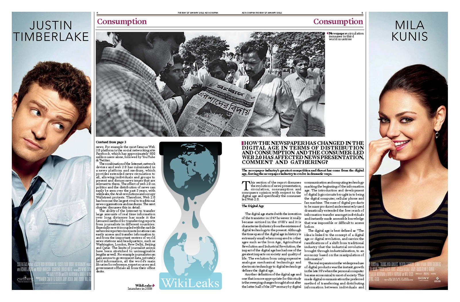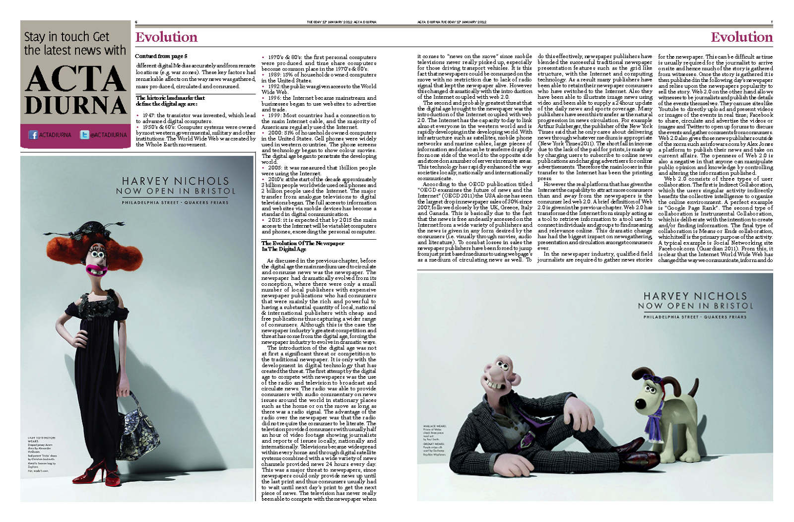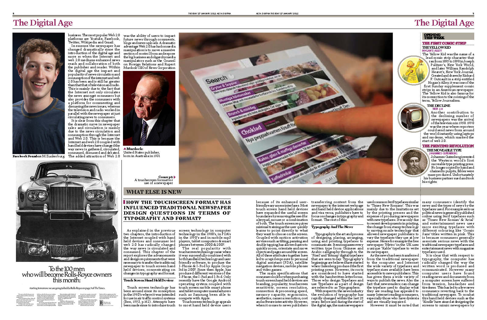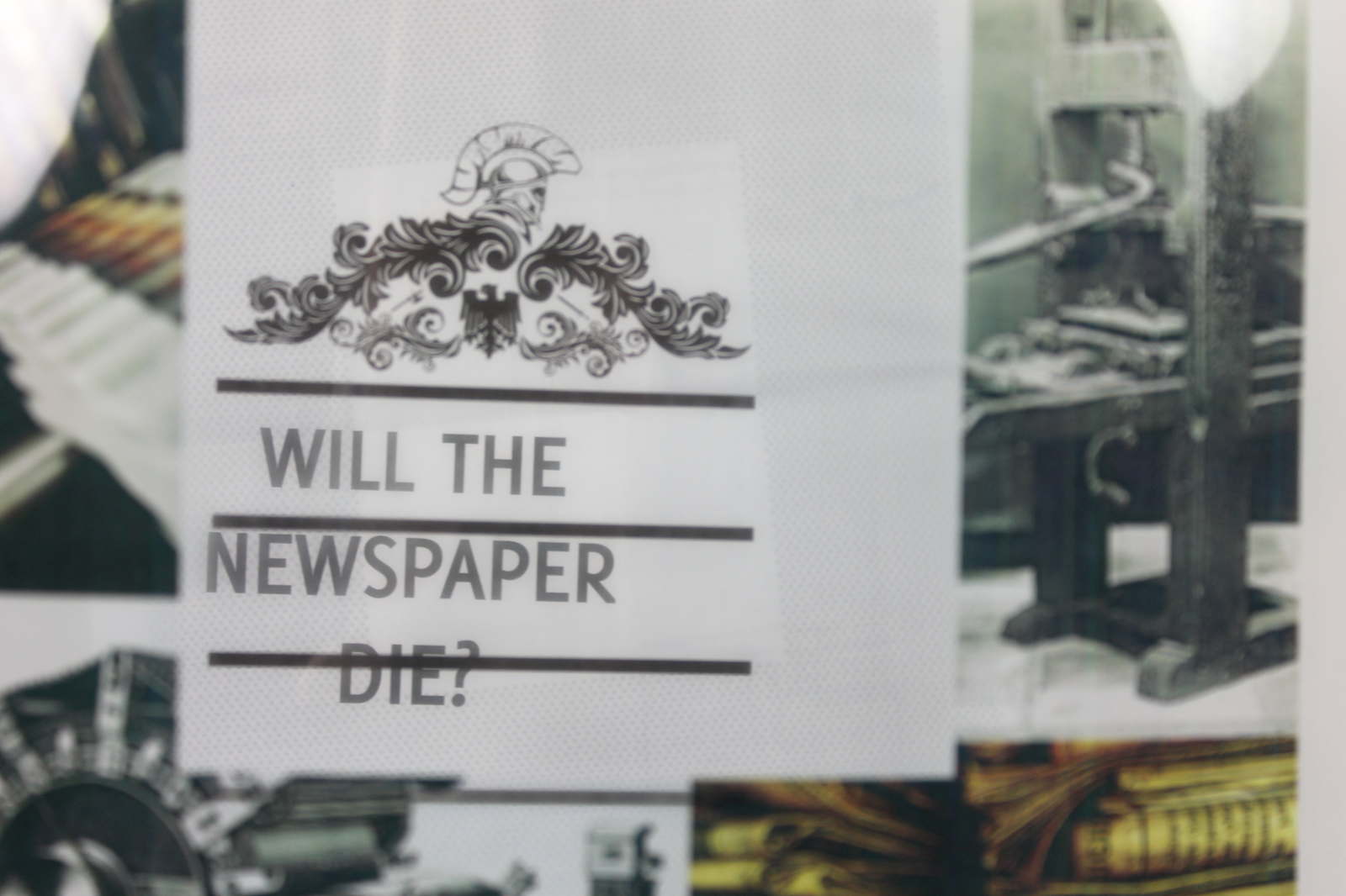 Create Acta Diurna, a newspaper for my dissertation on news development, expressing past and future influences with a three-dimensional element.