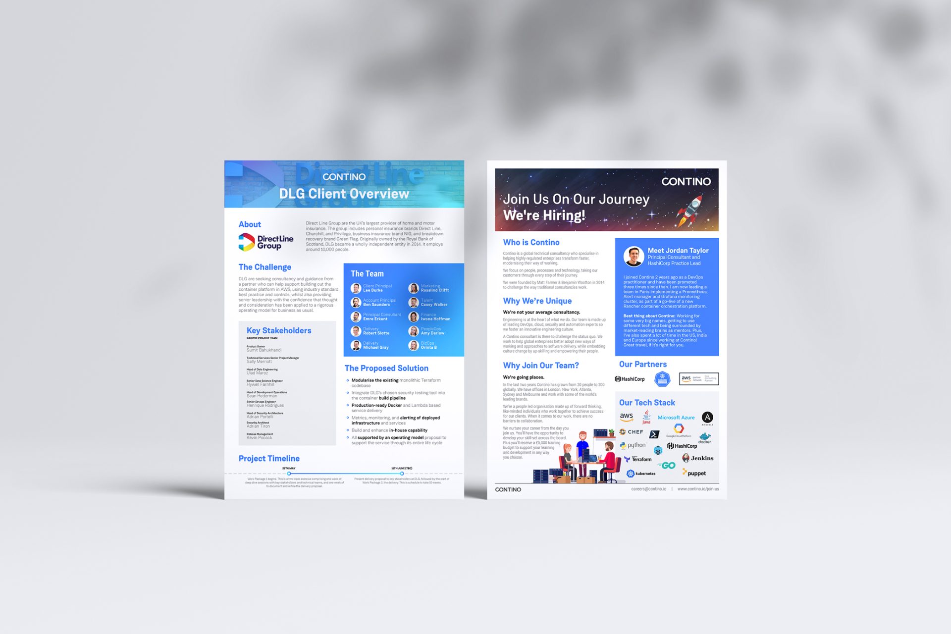 I directed design efforts, refined brand guidelines, and led campaigns tailored to specific blue chip clients across AIMPAC, EMEA, and US, aligning with Contino’s DevOps expertise.