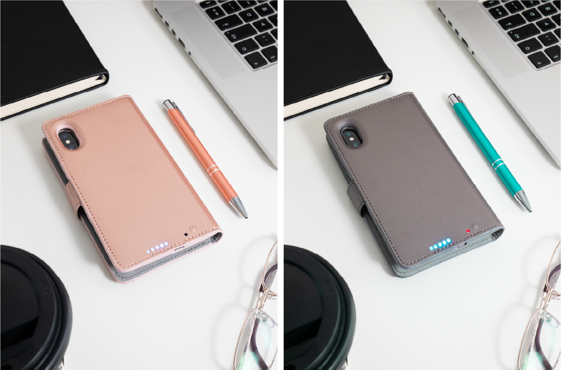 Develop a multifunctional smartphone accessory for cross platform, wireless charging with RFID protection and card storage.