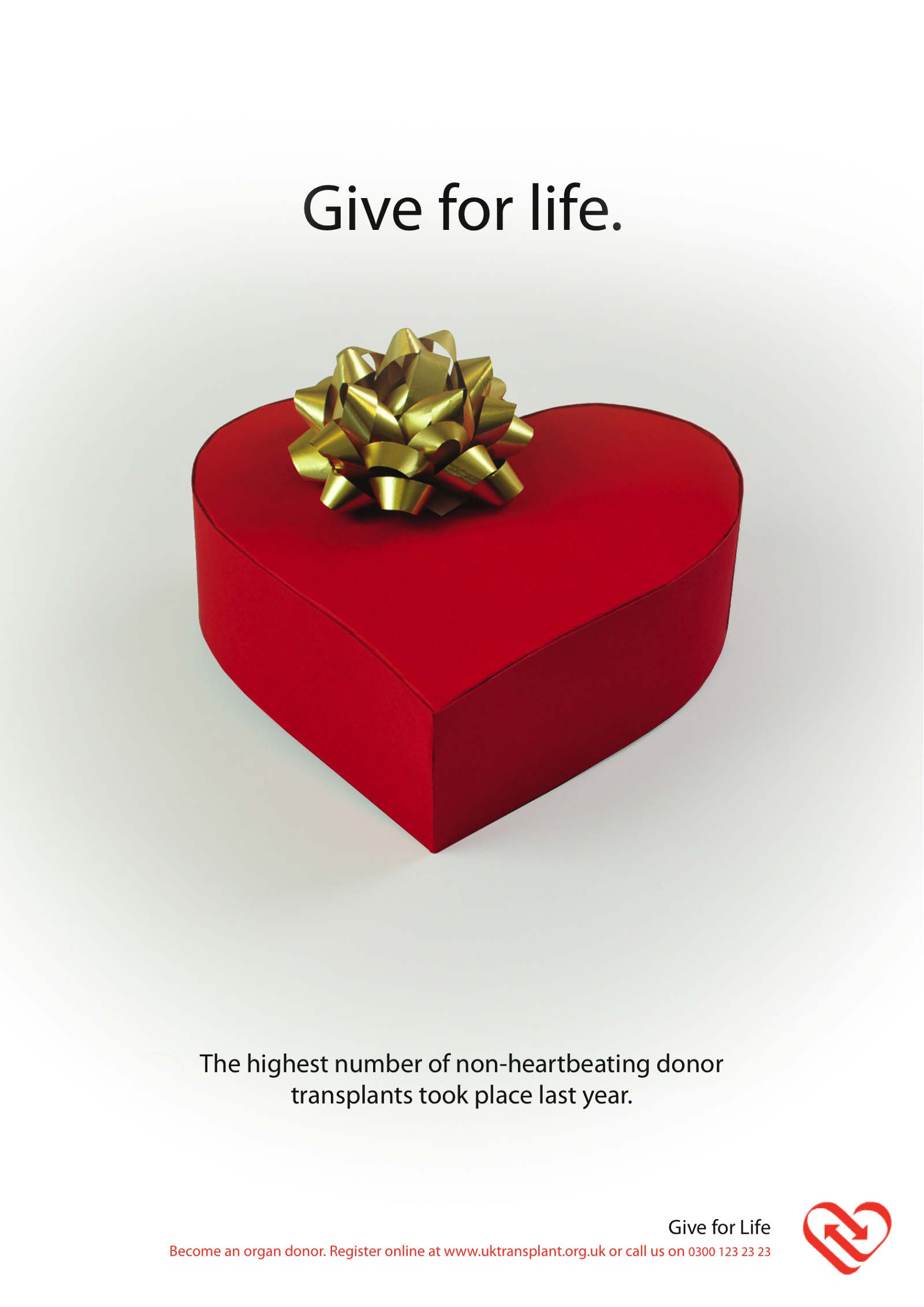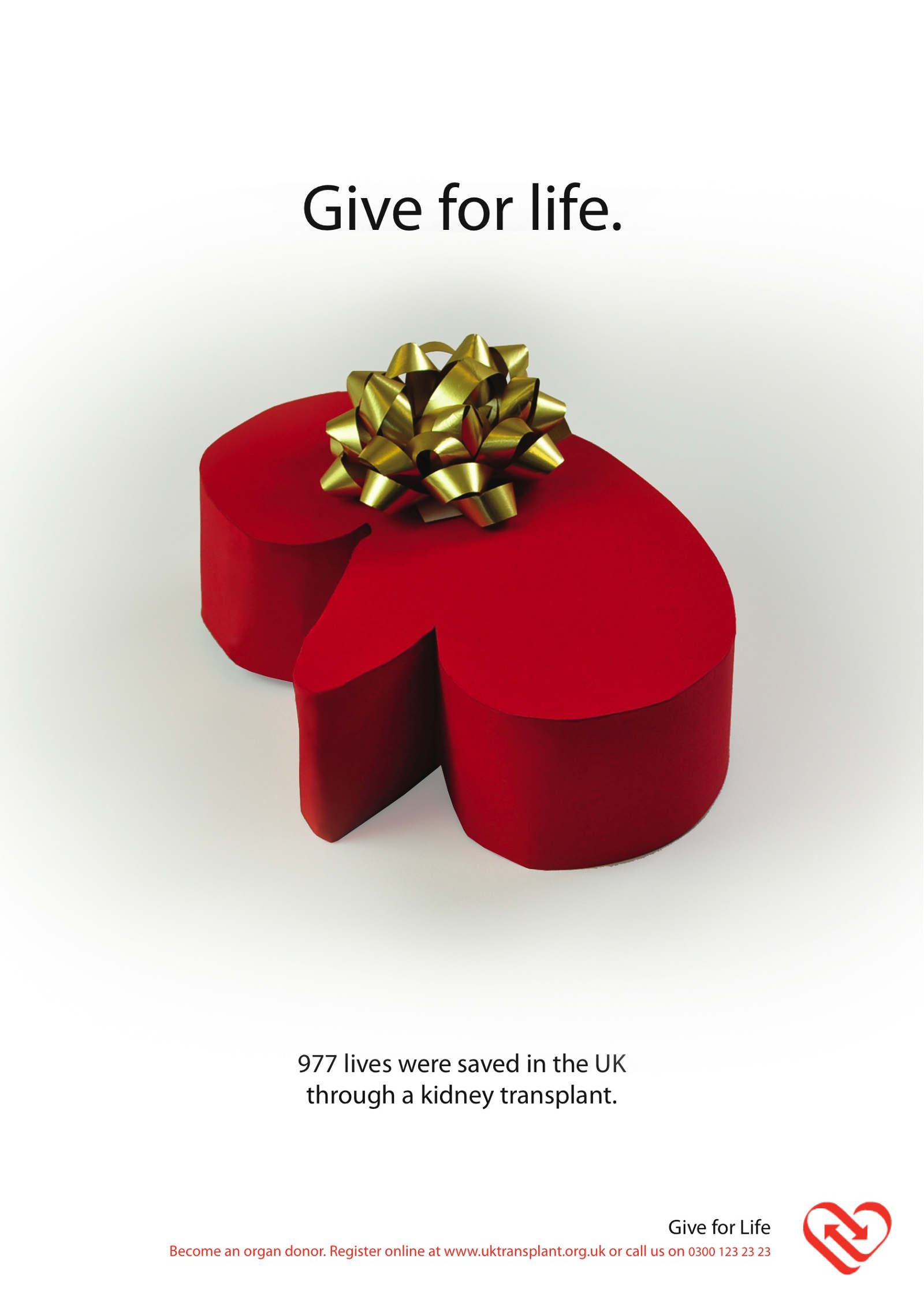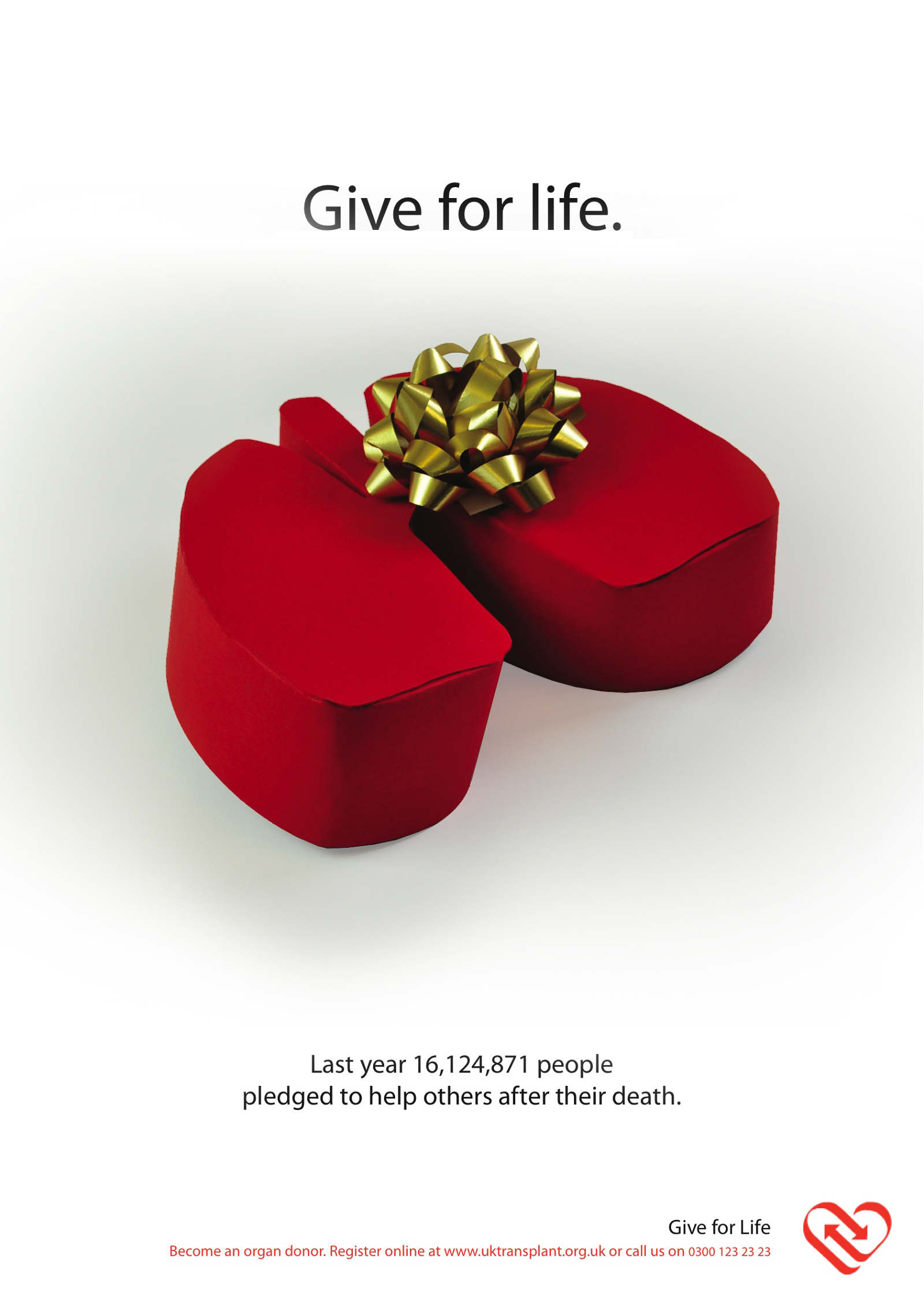 Create campaign emphasising organ donation as a “gift for life”. Focus on saving lives and making a difference.